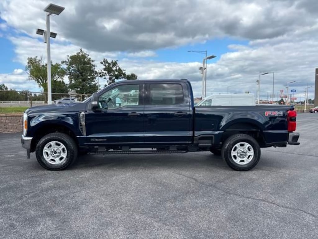 Courtesy Loaner Program Vehicle, 360-Degree Camera, 360-Degree Camera Package, Air Conditioning, AM/FM Stereo w/MP3 Player, Auto High-beam Headlights, BLIS w/Cross-Traffic Alert, Bumpers: chrome, Compass, Defrost w/Fixed & Privacy Glass, Delay-off headlights, Dual AGM 68 AH Battery, Electronic-Locking w/3.31 Axle Ratio, F-250 >10K GVWR Package, Front fog lights, Fully automatic headlights, FX4 Off-Road Package, Heated door mirrors, Hill Descent Control, Illuminated entry, LED Box Lighting, LED Center High-Mounted Stop Lamp (CHMSL) Camera, Off-Road Specifically Tuned Shock Absorbers, Platform Running Boards, Power door mirrors, Power driver seat, Power windows, Power-Sliding Rear-Window w/Defrost, PowerScope Trailer Tow Mirrors w/Heat, Privacy Glass, Rear Parking Sensors, Rear step bumper, Remote keyless entry, Remote Start System, Security system, Steering wheel mounted audio controls, SYNC 4, Tailgate Step & Handle, Telescoping steering wheel, Tilt steering wheel, Turn signal indicator mirrors, Unique FX4 Off-Road Box Decal, Wheels: 18" Sparkle Silver Painted Cast Aluminum. 2025 Ford F-250SD XLT Blue Metallic